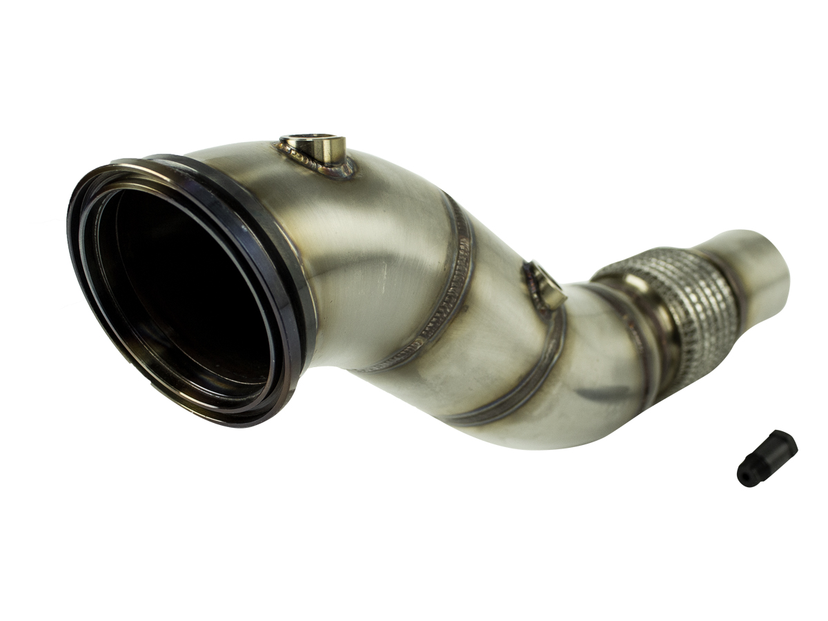 Downpipe é um sistema de ligação entre a turbina e o restante do escapamento, sua principal função é proporcionar maior vazão de ar, por não ter “barreira” e restrição ao fluxo de gases do escapamento com a retirada do catalisador. Desta forma, a rotação do turbo aumenta e o turbo lag diminui. O Downpipe pode ou não ter: flexível malha, sistema de encaixe por Flange, encaixe abraçadeira ou V-band para sua fixação e vedação.